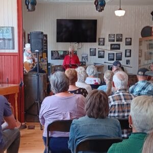The Station was filled to capacity Sunday, August 17, 2025 as Ottawa Valley Country Hall of Fame, 2024 inductee Eddie Francis told his story through song. His original works had the audience toe tapping and fully engaged. After his performance, conversation and refreshments were enjoyed by all. Eddie Francis in song and conversation will be available on the Opeongo Line Podcast.