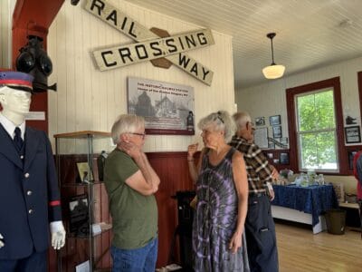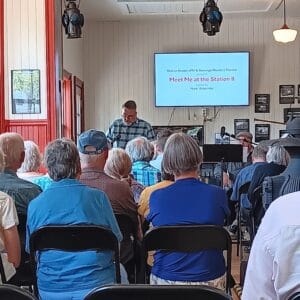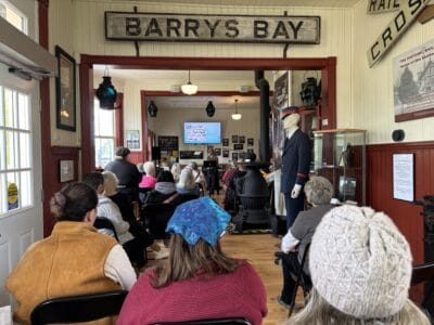Playwright Mark Woermke’s “Meet me at the Station” came to life Sunday, July 20,2025 at the Barry’s Bay Railway Station. Historical fiction based on actual people who worked and lived in and around the railway in 1944, the play was presented by Opeongo Readers Theatre Players and will be available as a Podcast on the Opeongo Line. The seats in the Station were full and laughter and applause was a’plenty.